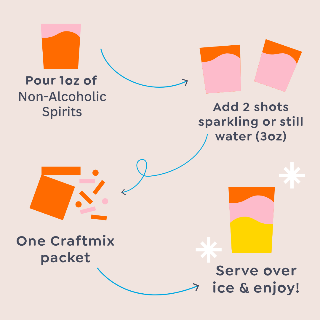 Each single-serve packet transforms into a mocktail with water and ice, or you can mix in Non-Alcoholic Rum for a vacation-ready cocktail in under 30 seconds. With only 5g of sugar and 25 calories, it’s a guilt-free way to sip something bold, bright, and refreshingly balanced. Always real ingredients, vegan, and gluten-free. It’s made for good times on the go, or at home with your family and friends—no bartender required.