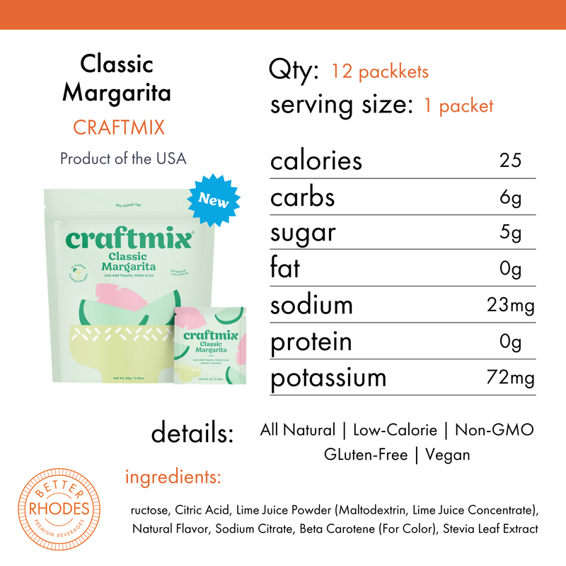 Craftmix is an all natural cocktail mix that comes in a dry blend! Craftmix cocktails are delicious, convenient, and guilt-free! These better-for-you cocktail mixes have only 25 calories and 5g of sugar per cocktail! Plus Craftmix comes in small packets - that way you can enjoy happy hour anywhere!s