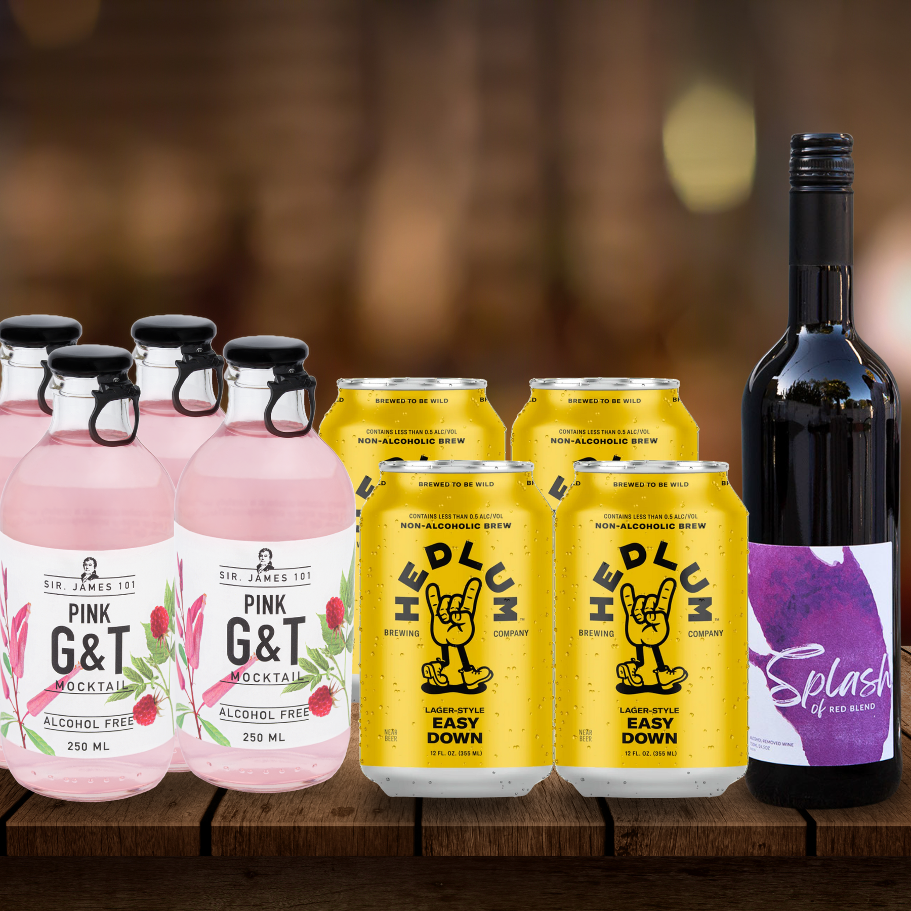 Splash Of Non Alcoholic Red Blend adds depth at the table. Sir James 101 Pink GT 4-Pack keeps things light and fun. Hedlum Easy Down 4-Pack brings smooth sipping for the whole day.